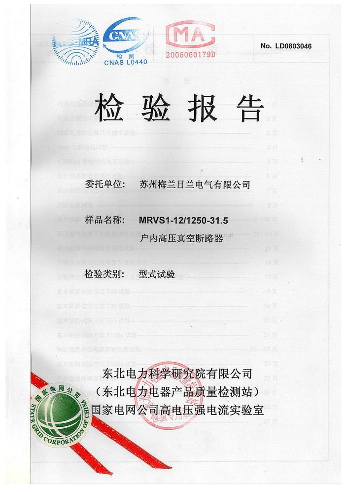 (成套)MRVS1高壓真空斷路器資質(zhì)證書