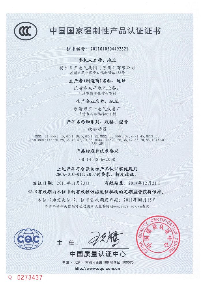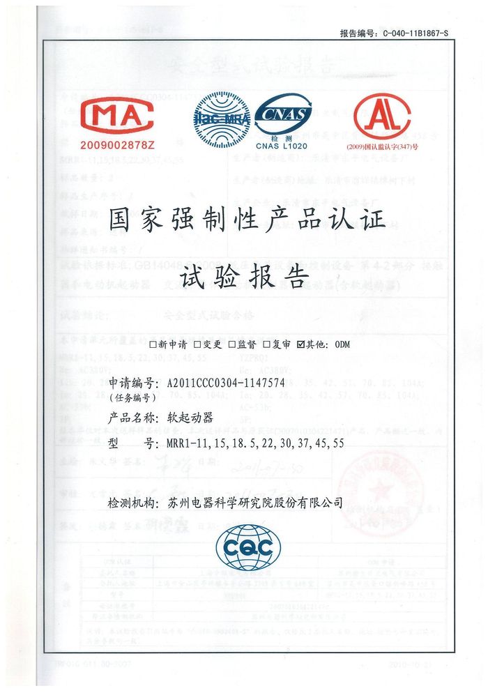 MRR1-11軟啟動(dòng)資質(zhì)證書(shū)