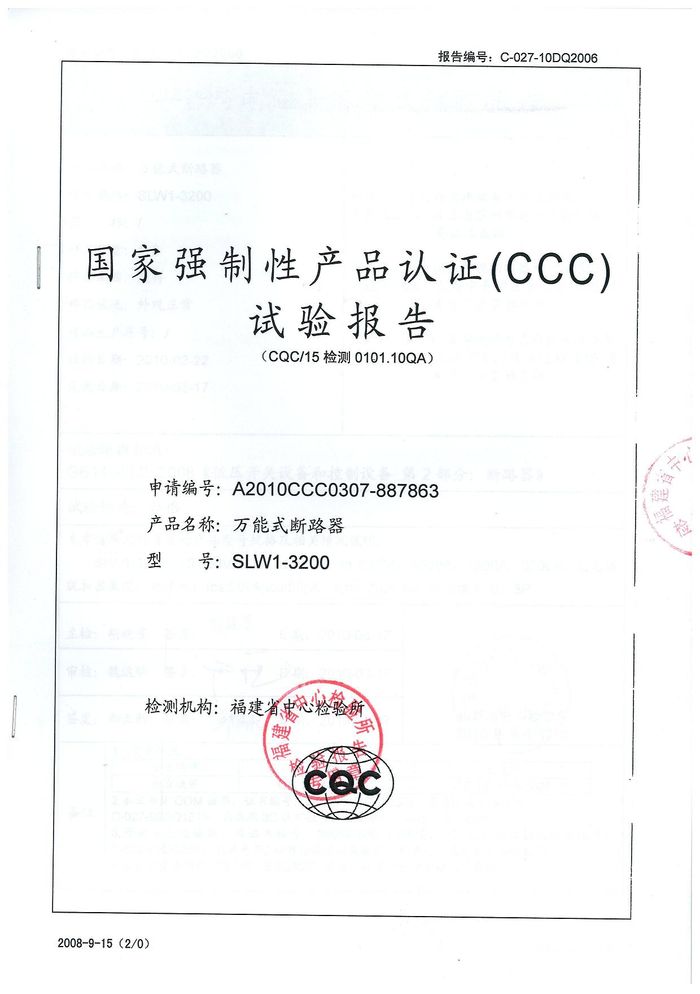 SLW1-3200萬能斷路器資質(zhì)證書