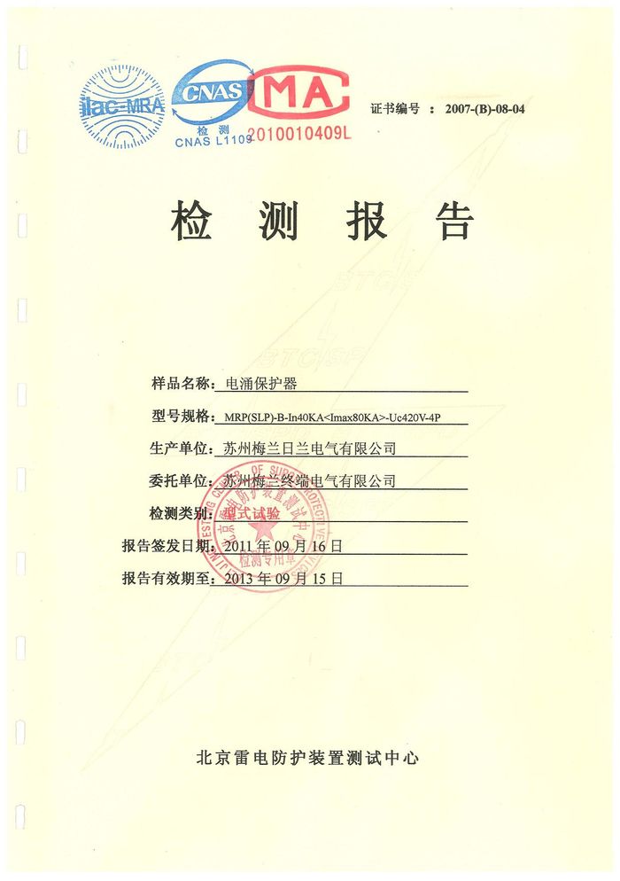 浪涌 MRP40KA資質(zhì)證書