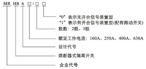 MRHR6系列熔斷器式隔離開關(guān)(以下簡(jiǎn)稱開關(guān))主要用于額定電壓交流380V和660V (45~62Hz),約定發(fā)熱電流至630A的具有高短路電流的配電電路和電動(dòng)機(jī)電路中,為電源開關(guān)、隔離開關(guān)、應(yīng)急開關(guān)、并作電路保護(hù)之用,但一般不作為直接開閉單臺(tái)電動(dòng)機(jī)之用。