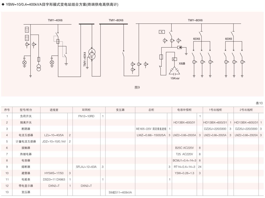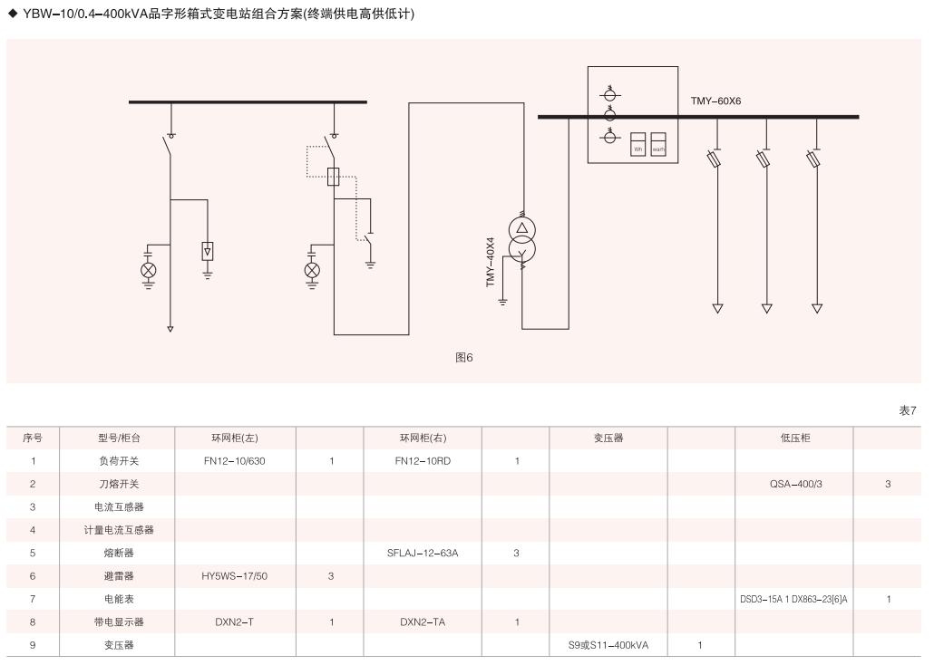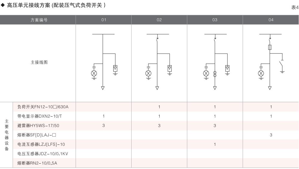 表6~列舉了一些典型組合接線方案,供用戶和設(shè)計(jì)單位參考。(以配裝壓氣式負(fù)荷開關(guān)為例)