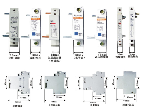 注:分勵+輔助、欠壓脫扣器安裝尺寸相同,報警觸頭與輔助觸頭安裝尺寸相同