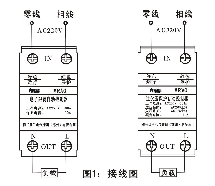8.2. 2MRVO過欠壓保護(hù)自動控制器使用說明,接通電源時,控制器紅色指示燈亮,控制器處于檢測電壓狀態(tài),無電源輸出,如電壓正常,延時2. 5min后紅燈變綠燈,控制器有電源輸出,主電路負(fù)載得電。在使用過程中,當(dāng)控制器亮紅色指示燈,控制器開始保護(hù),直到電壓恢復(fù)正常時開始計時1~3min進(jìn)行重合,負(fù)載得電。