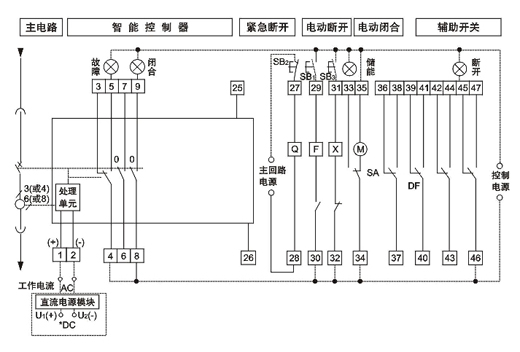 斷路器總體接線端子共有47個(gè),接線簡單、便于用戶使用