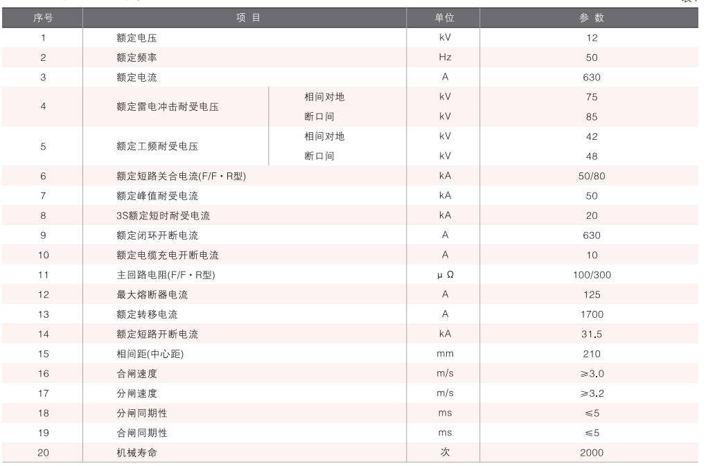 真空開關柜主要技術參數(shù)